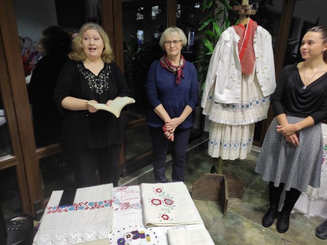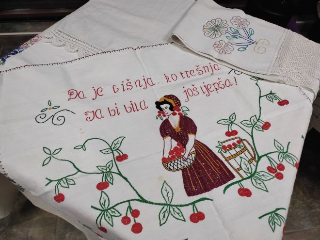 Izloženi su stari ručnici, zidnjaci i stolnjaci koji danas imaju veliku tradicijsku i kulturnu vrijednost, a nekada su bili u 'funkciji', odnosno koristili su se u domaćinstvima. Članice su izložile i staru narodnu nošnju, kakve su nekada žene same šivale, vezle i ukrašavale za svakodnevno nošenje, ali i svečanije prilike.
