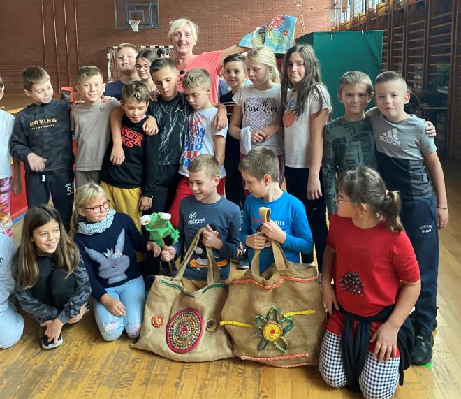 Tjedan su završili s plesom. Pripremili su izvrsne koreografije uz stručnu pomoć trenerice Naulipoplanda mame Hicks. Na kraju su se svi poslikali uz zastavu koju su zajedno oslikali svi učenici razredne nastave s motom “Ljubav djeci iznad svega.“