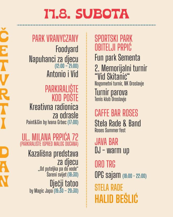 Osim koncerata, moći ćete i obići sajam OPG – ova te razna druga događanja, a detaljan pregled svih događanja možete pogledati ovdje: