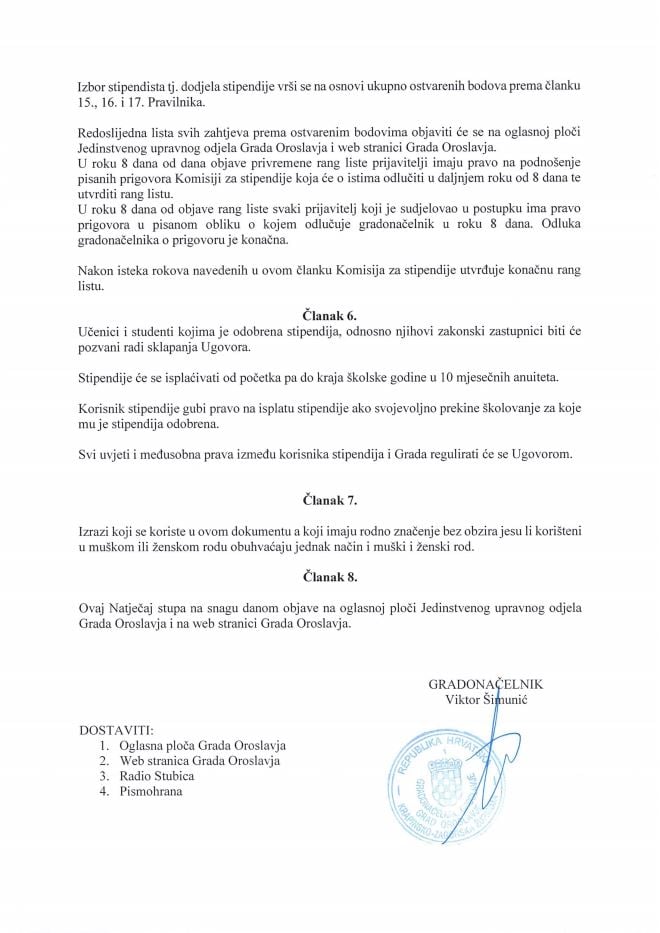 Javni natječaj za Stipendije u Oroslavju