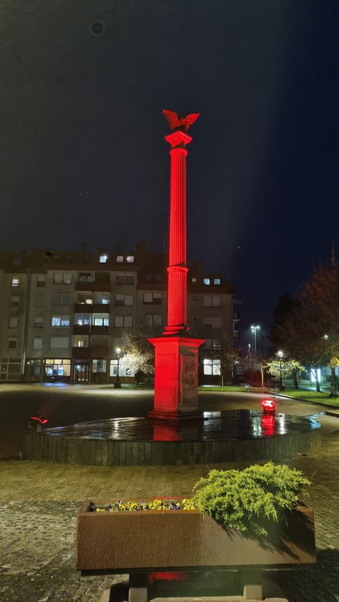 Jučer je orao na Oro trgu u Oroslavju osvijetljen tamnocrvenom bojom.