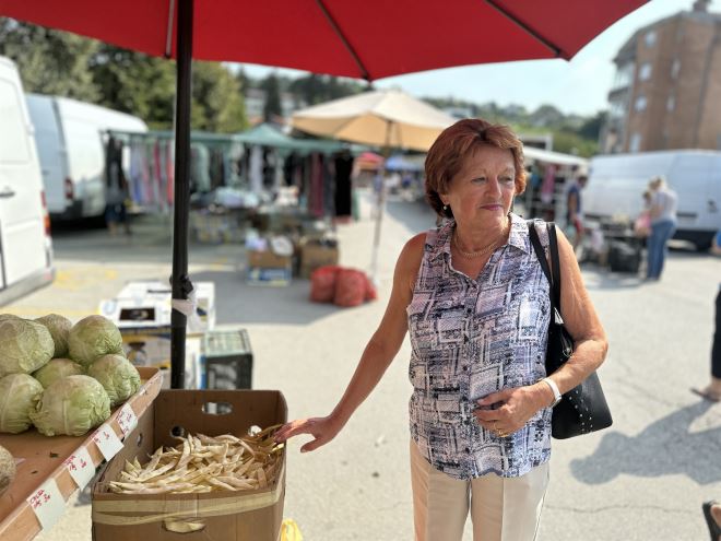 Kupaca ima, samo nema robe. Tuča nam je puno toga uništila. Voća nemamo, ali ima nešto krastavaca i paprike, cikle. Ljudi su prije više kupovali, ni ipak mi se čini da se vraćaju placu.