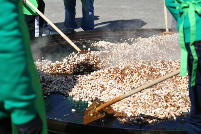 Trinaesteročlana kuharska ekipa, na čelu sa majstorom Stjepanom Kahlinom, uhvatila se u 'koštac' s čak 50 kilograma špeka, 20 kilograma luka, 30 kilograma šampinjona i 5 000 jaja, kako bi napravili deliciju koju će podijeliti posjetiteljima.