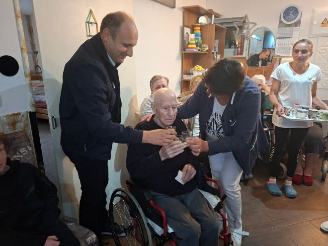 Torta, zdravica, svjećice, baloni, radost i pjesma. Bila je to prava rođendanska proslava koju je, uz korisnike i djelatnike Doma, uveličala i slavljenikova obitelj, a gospodina Dragutina posjetio je i potpredsjednik Gradskog vijeća Grada Pregrade Goran Horvat, uručivši mu prigodni poklon u ime gradonačelnika Gorana Vukmanića.