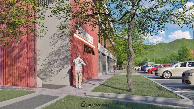Zgrada je koncipirana kao poslovno stambena zgrada od oko 3000 m2 a sastojati će se od trgovačkog centra na dvije etaže, uredskog poslovnog dijela te stanova