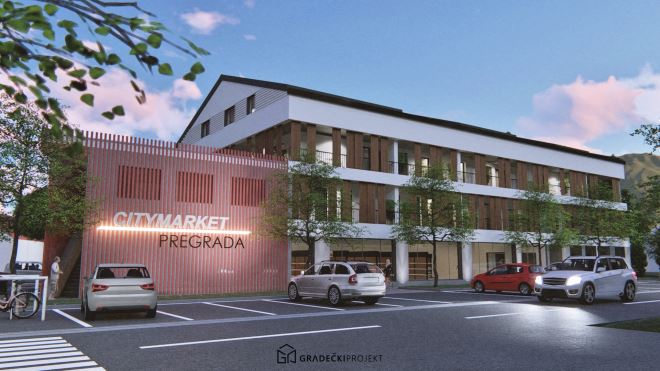 Kao što je već ranije najavio gradonačelnik Pregrade Marko Vešligaj, započela je gradnja pravog malog podcentra u Pregradi, City Market Pregrada. Zgrada je koncipirana kao poslovno stambena zgrada koja će sadržavati sveukupno 3300 četvornih metara uporabnih površina, a sastojati će se od trgovačkog centra na dvije etaže od 1700 četvornih metara, uredskog poslovnog dijela te 13 elegantnih stanova od 45 m2 do luksuznog penthousea od 160 m2. Bit će tu i stanovi prilagođeni osobama s invaliditetom. Zgrada će biti energetski učinkovita s puno izolacije sa sustavom grijanja, zajedničkom kotlovnicom s dizalicom topline. Zgrada je oblikovana da se uklopi u estetiku zagorskog krajolika, a da svejedno naglasi svoj suvremeni koncept i raznolik sadržaj.