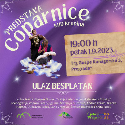 Sljedećeg petka, 01. rujna s početkom u 19 sati u Pregradi nam gostuje KUD Krapina s kazališnom predstavom „Coparnice“.