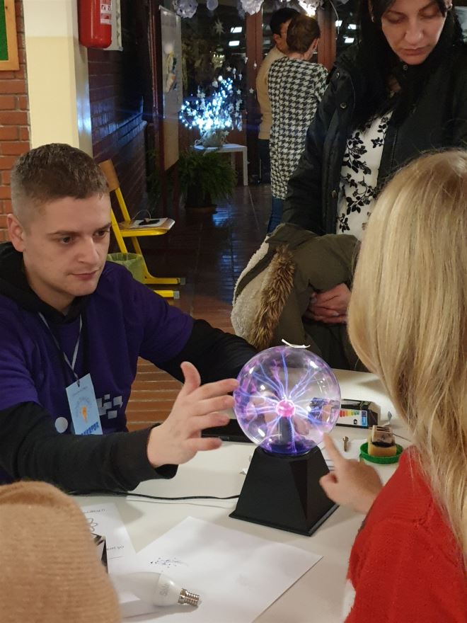 Završni dio ovogodišnjeg projekta Večer znanosti održan je u petak u Osnovnoj školi Janka Leskovara u Pregradi. Tog petka dogodio se neočekivani spoj znanosti i sporta s puno euforije i dobrih emocija. Posjetitelji su mogli vidjeti i sudjelovati u raznim aktivnostima: gravirati staklo, čitati tajne poruke, izrađivati svjetleće čestitke, promatrati kemijske eksplozije, gledati u beskrajno ogledalo, elektricitetom dizati kosu na glavi, promatrati fosile i stijene kroz mikroskop, računati pomoću abakusa, izrađivati vulkane i kaleidoskope i još puno, puno toga.