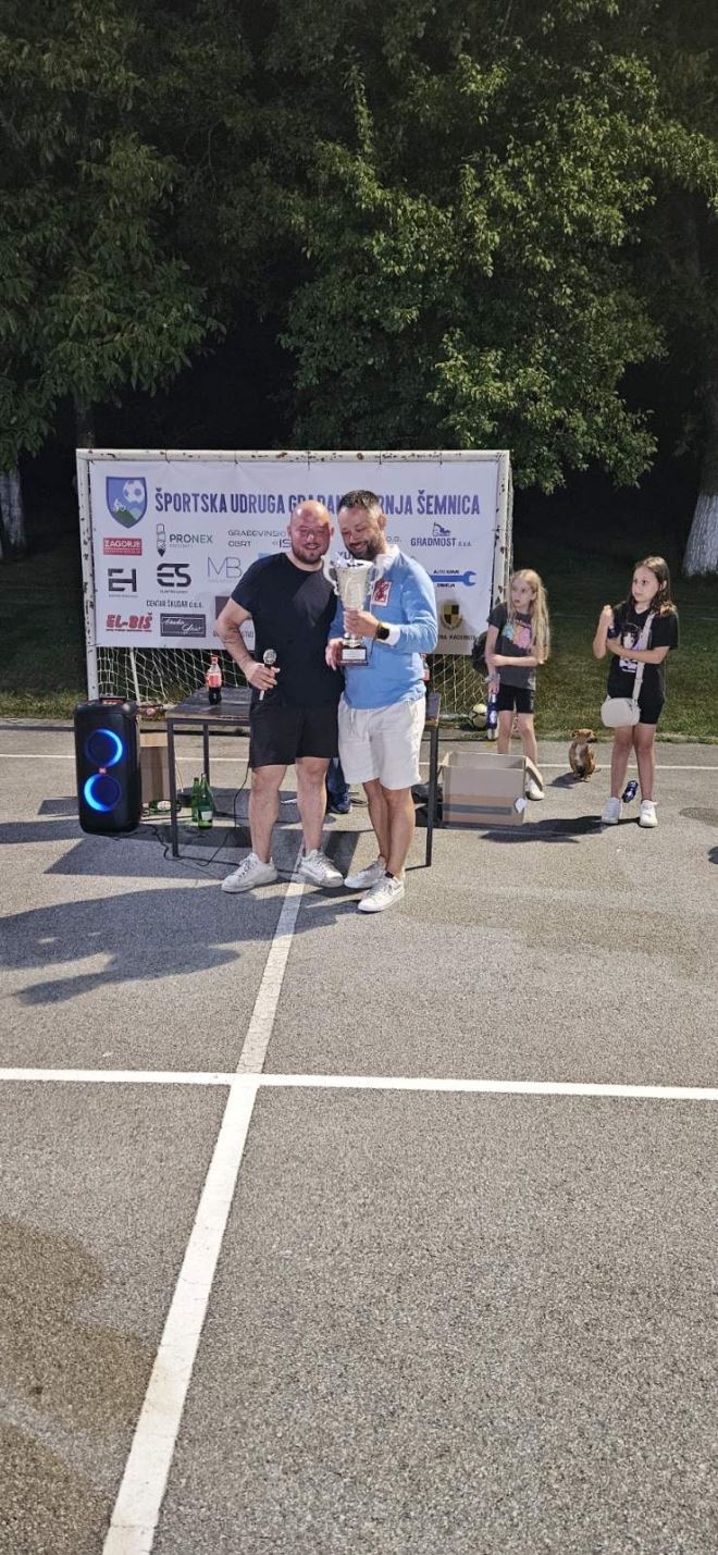 Športska udruga građana Gornja Šemnica organizirala je prošlog vikenda 7. Malonogometni turnir 3V3. Prijave za ekipe bile su otvorene do četvrtka, 11.07.2024., a igralo se 12. i 13. srpnja. Kotizacija je po ekipi iznosila 50 €, a bilo je prijavljeno 24 ekipe iz Hrvatskog zagorja, Zagreba i Slovenije. Prvo polufinale izborile su ekipe Brdo i Juraj centar&Šuš (2:0), a drugo polufinale ekipe Megabar & gym i Elektro Herak (2:0). Za treće mjesto, nakon raspucavanja penala izborila je ekipa Juraj centar & Šuš (2:1). Finale su izborile sa odličnom igrom ekipe Megabar & gym i Brdo, a pobjedu je uvjerljivo 3:0 izborila ekipa Megabar & gym.