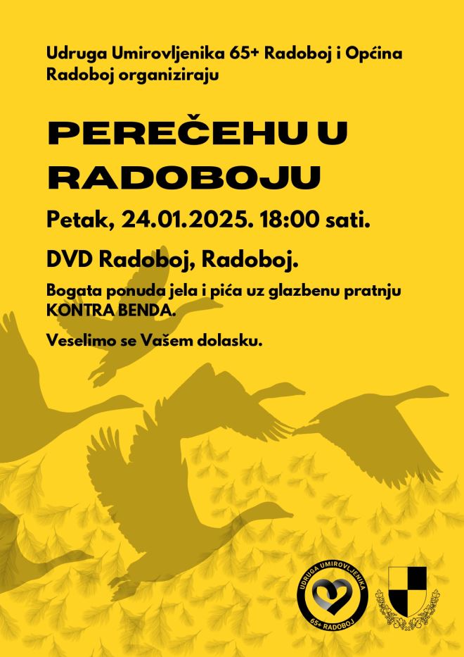 Udruga OUU Radobojsko srce 65+ Radoboj i Općina Radoboj organiziraju Perečehu u Radoboju. Ovaj starinski običaj čehanja perja održat će se u petak, 24. siječnja 2025. u DVD Radoboj s početkom u 18 sati. Udruga će ovim putem uprizoriti nekadašnji društveni događaj koji se odvijao u Zagorju tijekom zimskih mjeseci.