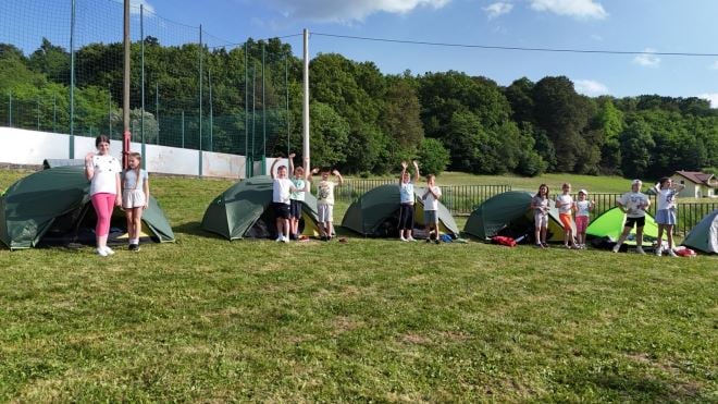 Priliku za isprobavanje nabavljene opreme dobili su u petak i subotu, 6. i 7. lipnja 2025., na dvodnevnom kampiranju ispred Područne škole Jazvine. Uz pratnju učiteljica Marijane Martinez i Karmen Martinić, učenici su proveli nezaboravno vrijeme ispunjeno učenjem, timskim radom i zabavom.