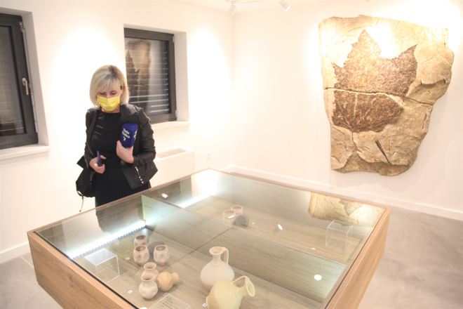 -Radoboj je poznat po okamini lista vinove loze, jedinstvena je u Europi, jer je pronađena u radobojskom sumporokopu, i najstarija je okamina ove vrste u Europi, starosti 12 do 14 milijuna godina. Original se nalazi u Prirodoslovnom muzeju u Zagrebu, ovdje je replika, a dali smo je povodom otvorenja Hiže vinove loze uvećati, da dominira ovim prostorom – dodala je Hazulin Pospiš.