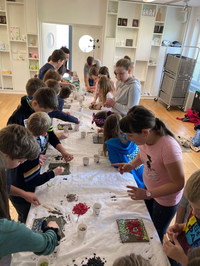 Muzejski postav razgledale su i brojne druge Osnovne škole diljem Hrvatske, uz također i učenike OŠ Radoboj PO Jazvine koji su sudjelovali u zanimljivoj radionici kreiranja rimskih mozaika.