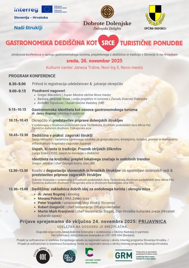 Konferencija se organizira u sklopu projekta „Naši štruklji“, koji se provodi u partnerstvu Zavod za kulinariko in turizem Dobrote Dolenjske (SLO) i Općine Radoboj (HR) odobrenog kroz program Interreg VI-A Slovenija – Hrvatska 2021-2027.