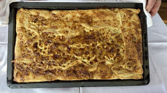 Baš kao i Jasnini gosti, koji su se skupili ovom prilikom. Stigla je cijela familija na ručak kojega je Jasna napravila onak po domaći: pečenice s restanim krumpirom i kiselim zeljem, hladetina, govedina na salatu, kobasice i špek, sir s vrhnjem, raca z mlincima, zaseka, a svi su jedna dočekali komperjaču. Za desert, kao šećer na kraju – pita od sira, prhka i sočna. Dodajmo da su pokrovitelji ove pripovijesti 'Babičinih recepata' Grešna Gorica i Mini mljekara Veronika.