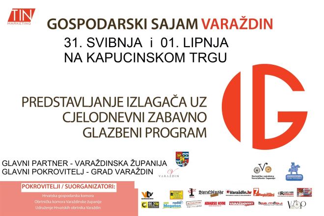 Ovogodišnji – peti po redu GSV (Gospodarski sajam Varaždin) održat će se 31. svibnja i 01. lipnja 2019. na Kapucinskom trgu u Varaždinu, a uz izlagačke aktivnosti i stručno popratne programe nudit će cjelodnevni zabavno glazbeni program te besplatan ulaz za posjetitelje. Na sajmu će se predstaviti obrtnici, poduzetnici, gradovi, općine, OPG-i,vinari, modni dizajneri, likovni umjetnici, udruge, ugostitelji, domaće radiosti, inovatori i auto kuće s područja Sjeverozapadne Hrvatske. Na sajam ćemo pozvati završne razrede srednjih škola u Varaždinskoj i Međimurskoj županiji, tako da će to biti prilika za tvrkte koje trebaju radnike.