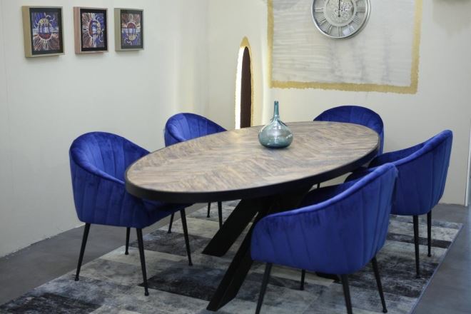 Svijet namještaja - Mobel Land - je tek nedavno stigao u Hrvatsku, a u svojoj ponudi imaju najbolje svjetske brendove namještajem - poput Rolf Benza, Richmonda, Loiuidice*D i mnogi drugi. U Mobel Landu smo pronašli predivne sofe i fotelje, ali za oko nam je najviše zapala kombinacija za blagovaonicu - čvrstog ovalnog stola Barrington koji je izrađen od kombinacije hrasta i metala, s baršunastim stolcima Coco Blue.