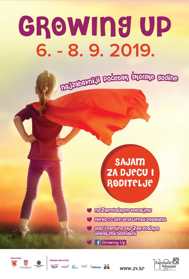 Uoči zvuka prvog zvona nove školske godineo držat će se GROWING UP, sajam za djecu i roditelje. Svojom bogatom i raznolikom ponudom sa preko sedamdeset sati programa idealno je mjesto za druženje obitelji posljednji vikend prije nego krene nova školska godina.