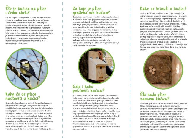 Više o izradi kućica za ptice možete naći na letku Kućica za ptice udruge BIOM.