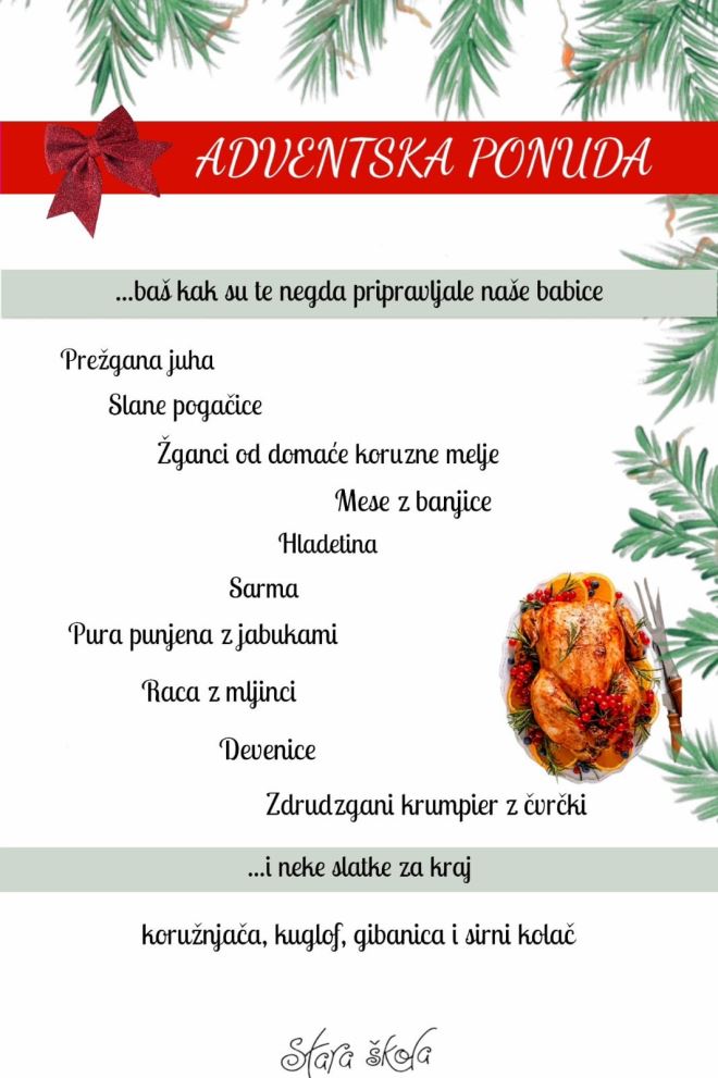 Domaći žganci, meso z banjice, hladetina, sarma i raca z mlincima samo su dio specijalne Adventske ponude u Staroj školi.