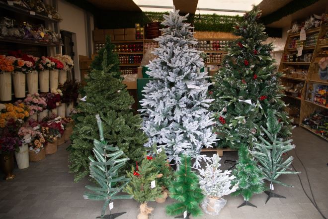 U ponudi su i dalje aranžmani za groblje i stakleni lampioni s božićnim motivima.