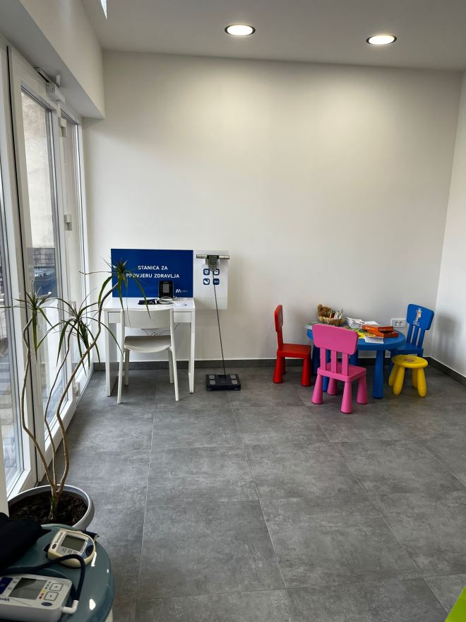 Za one najmlađe u prostoru se nalazi i veseli kutak gdje se oni mogu zabaviti dok roditelji obavljaju svoju kupnju, isto tako možete pronaći tlakomjer i vagu s prikazom indeksa tjelesne težine. Ispred same poslovnice nalaze se i četiri parkirna mjesta tako da možete bezbrižno parkirati svoj automobil i obaviti svoju kupovinu u ljekarni.