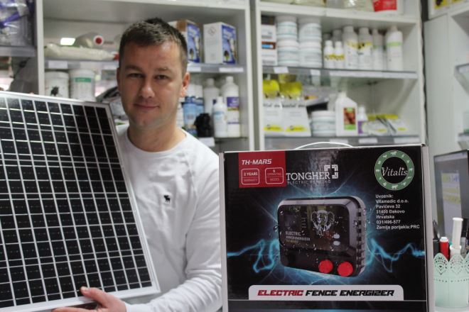 Popularno je, kaže, i solarno napajanje pogotovo ako nemate struju na površini koju ograđujete ili ako je riječ o udaljenim lovištima. "Instalira se solarna ploča koja se spaja s uređajem i akumulatorom i tako ih napaja", objašnjava nam Šimić. Međutim, osim njih tvrtka Vitalis u ponudi ima i akumulatore na punjive baterije.