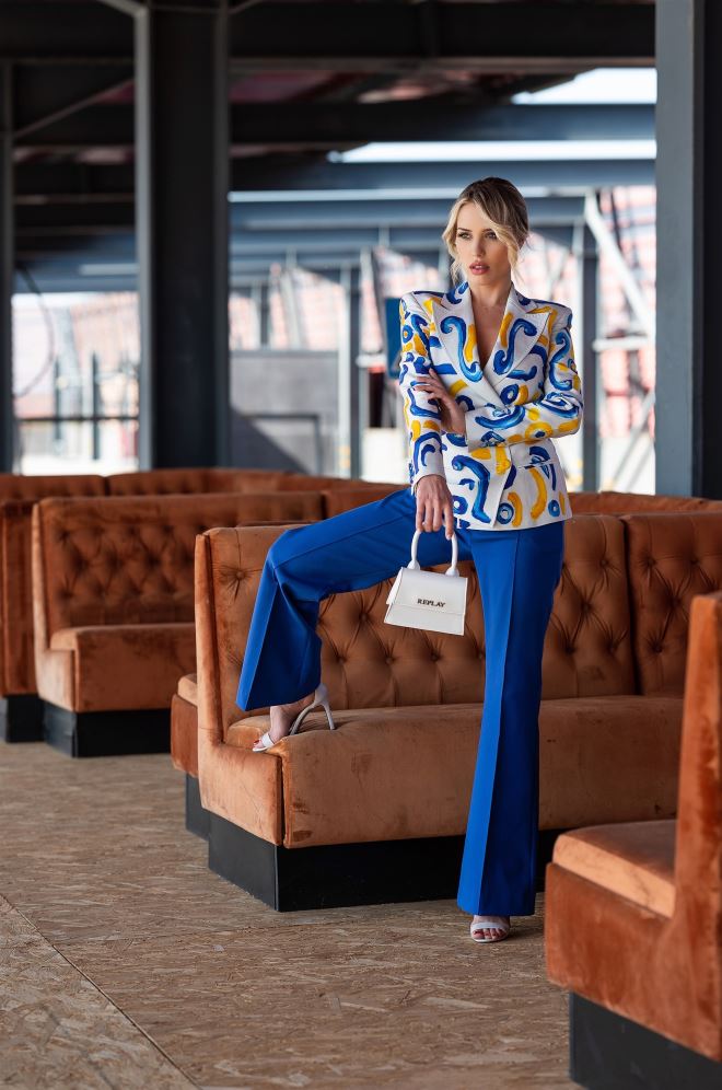 Sako – HalfPrice, Moschino 1650,00 kn; Hlače – Varteks 1090,00 kn; Sandale – Mass 399,90 kn; Torbica – Mass, Replay 759,00 kn; Westgate Shopping City