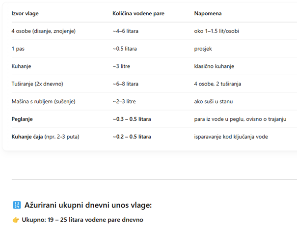 *** Prosječna količina vlage koju proizvede četveročlana obitelj