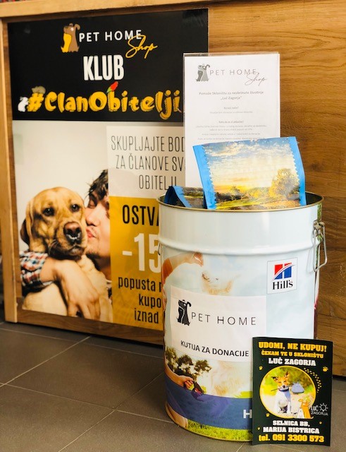 Zajedno pomažemo udrugama koje zbrinjavaju napuštene životinje. Ako poželite kupiti nešto iz naše ponude za udrugu Luč Zagorja, obratite se našem djelatniku, kupovinu tada možete obaviti s 15% popusta, po kupljeno dolazi udruga čim napunimo kutiju za donacije. Na ovaj način zajedno sudjelujemo u pomaganju onima kojima je naša pomoć najpotrebnija.