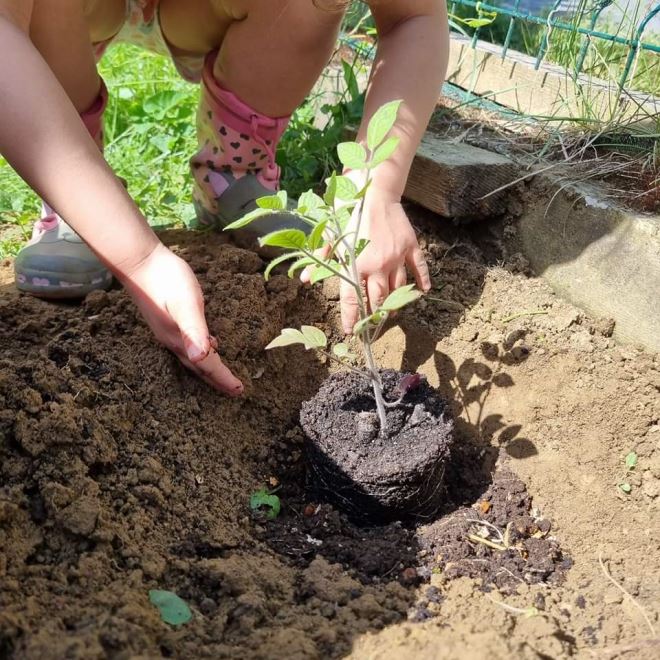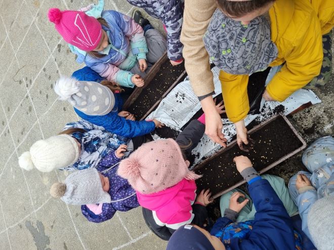 U Točkici se njeguje kontakt s prirodom stoga djeca sade i siju u svoj vrt, ostatke voća i povrća odlažu u kompostište s kalifornijskim glistama te naravno puno vremena provode na otvorenome. Prirodni materijali ono je čemu svi u Točkici teže.