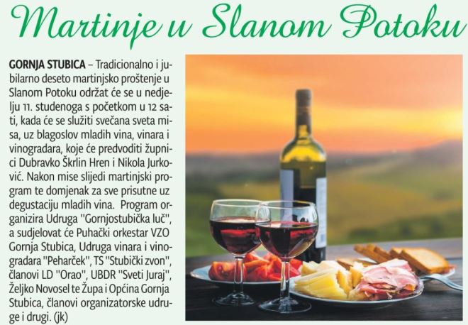 U ceremoniji krštenja mošta u zagorskim klijetima i podrumima neizbježne su uloge: domači, stoloravnatelj,vinotoča, gospon sudec, kum mladom vinu, i na kraju biškup sa svojom svitom bez kojih se taj posel ne more zabaviti. Svi prisutni u ceremoniji “kršenja mošteka” oslovljavaju s “pajdaš” i” pajdašica” te kako je svaki sa svakim na 'ti'. Na 'vi' je samo jedna osoba u cijelome društvu, a to je gospon sudec. Kako znamo da je Martinje jedan od najvažnijih 'blagdana' Zagorcima, donosimo pregled gdje proslaviti Martinje.