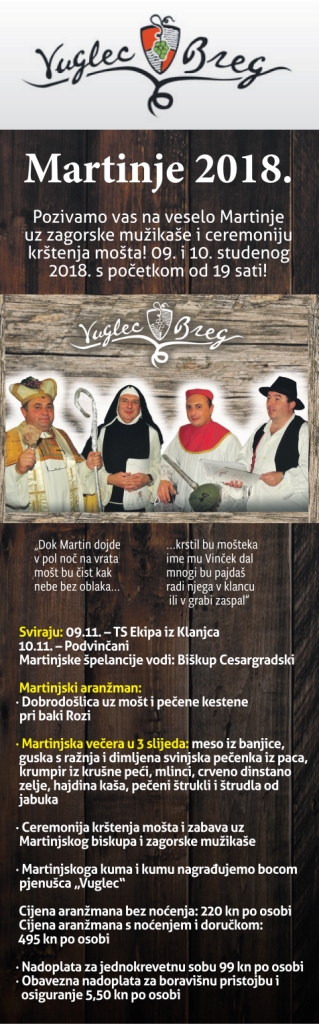 Naime, 11. studenog 397. godine pokopan je Sveti Martin iz Toursa koji je prvi svetac koji nije bio mučenik. Prema legendi, bio je veliki ljubitelj vina. Trebao je postati kršćanski biskup, ali on to nije htio i prema pričama sakrio se u gušćak te su ga guske svojim gakanjem odale. Na kraju je ipak postao visoki crkveni dostojanstvenik. Upravo je Martin zaslužan za uvođenje ceremoniju krštenja mošta tj. Martinje koje se njeguje u sjevernoj Hrvatskoj i Sloveniji. U mjestima u kojim je sveti Martin zaštitnik priređuju se najveće tradicionalne glazbene i folklorne zabave na gradskim trgovima. Na proslavama najčešće se priprema martinjska guska i mlinci. “Dok Martin dojde v pol noč na vrata, mošt bu čist kak nebe bez oblaka... Krstil bu mošteka, ime mu Vinček dal, mnogi bu pajdaš radi njega v klancu ili v grabi zaspal”, jedan je od stihova koji se u Hrvatskom zagorju izgovara prilikom Martinja.
