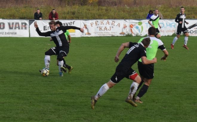 Gosti su krenuli jako potentno i u prvih 6 minuta složili nekoliko prilika. Već u 1. minuti s lijeve strane je nabacio Mihael Kralj, a na drugoj stativi se našao Nino Kos i pucao u blok od kojeg se lopta odbila u korner. U 3. minuti Nikola Korenić se odlično probio po lijevoj strani dao povratnu za Juricu Plukavca, koji sa 10-tak metara puca preko gola. U 5. minuti Kralj korsiti benefit mokrog terena, voda mu zadržava loptu uz aut crtu, pa nabacuje po zemlji, ali golman Kristijan Škvorc brani. U 6. minuti Korenić uzima jednu loptu na centru, prebacuje za Martina Majcenića, koji se bori sa dvojicom obrambenih igrača i na kraju puca pored gola. Domaćini prvi puta nešto pokušavaju u 8. minuti, kada Matija Ciglenečki ubacuje s lijeve strane, a lopta se od Matije Novačkog odbija u ruke golmana Gorana Malogorskog.