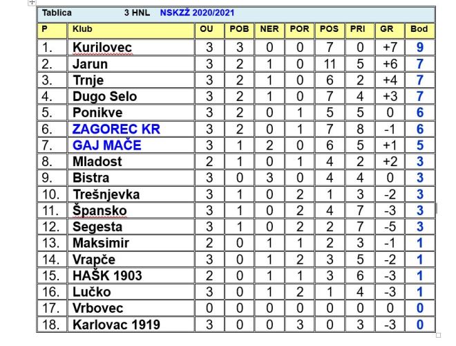Lider Kurilovec ne popušta. Kurilovčani su u ovom kolu s 2:0 nadvisili Lučko i tako ostali jedina momčad sa stopostotnim učinkom, ali i bez primljenog zgoditka. Ljepoticu kola i dosadašnjeg djela prvenstva odigrali su Dugo Selo i Gaj. Pobjednika nije bila, ali uzbuđenja je zato bilo napretek. Zagorec se vrlo brzo vratio na pravi put nakon potopa kod Jaruna. Krapinčani su HAŠK-u na Peščenici zabili pet komada uz hat-trick Matija Smrekara. Nakon tri kola Zagorec drži šestu, a Gaj sedmu poziciju. Uz Kurilovec, Gaj i Dugo Selo, za poraz još ne znaju i Jarun koji je u ovom kolu samo remizirao s Bistrom koja u tri kola ima tri remija, te Trnje koje je slavio protiv Trešnjevke. U derbiju zapadnog dijela grada Ponikve su slavile protiv Vrapča, a u derbiju prošlogodišnjih čevrtoligaša Segesta je stigla do prve pobjede protiv Karlovca koji još nije osvojio ni bod. Do svoje prve i uvjerljive pobjede u ovom prvenstvu stigla je petrinjska Mladost koja je u potpunosti nadvisila Špansko. Zbog samoizolacije nogometaša Vrbovca odgođena je utakmica Maksimir Vrbovec, tako će Vrbovčani svoju prvu prvenstvenu utakmicu odigrati u subotu kod kuće protiv Zagorca, iz razloga što im je ogled protiv Gaja u srijedu odgođen radi obaveza Gaja u Hrvatskom kupu.