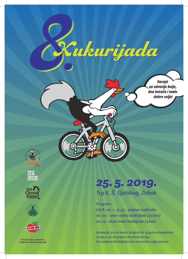 Povodom Svjetskog dana sporta i Svjetskog dana nepušenja održat će se 8. Zabočka Kukurijada, u subotu, 25. svibnja 2019. Biciklijadu organizira Rekreativni biciklistički klub Ku-ku-ri-ku u suradnji s Koordinacijskim odborom akcije Grad Zabok prijatelj djece, Društvom Naša djeca Zabok, Zavodom za javno zdravstvo KZŽ i Old Choco House.