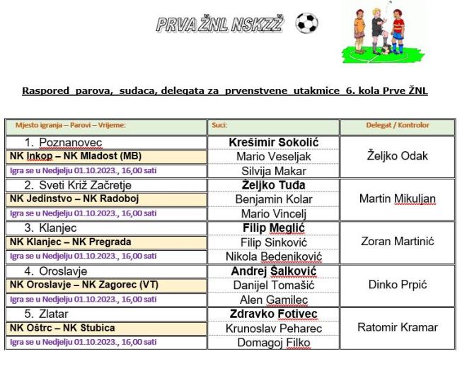 Danas se igra 6. kolo 1 i 2 zagorske nogometne lige, s iznimkom dvije utakmice u 2. ligi. U 1. zagorskoj ligi na rasporedu je veliki derbi, u kojem Klanjec dočekuje Pregradu. Vodeći Klanjec još je bez poraza, a Pregrada se nakon dva uvodna poraza digla i sa tri pobjede dolazi na derbi sa rastom forme. Hoće li to biti dovoljno za sjajnu ekipu Klanjca, možete provjeriti od 16 sati u Klanjcu. U isto vrijeme igraju se i druge utakmice. Zanimljivo će biti i u Zlataru, gdje Oštrc dočekuje Stubicu, posebice nakon pojede Oštrca protiv Inkopa i poraza Stubice od Oroslavja. Inkop će pak u lokalnom derbiju dočekati Mladost MB, a Oroslavje je domaćin Zagorcu VT. Prvu pobjedu tražit će Jedinstvo protiv Radoboja.