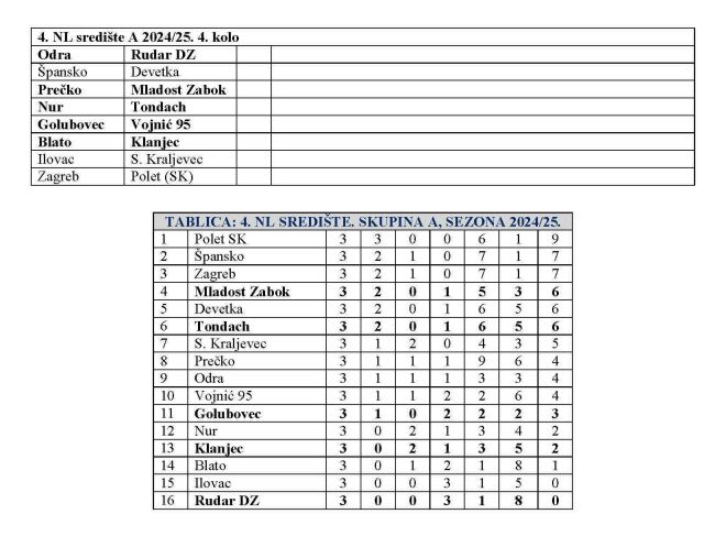 Danas je na rasporedu 4. kolo 4. NL središte skupina A.