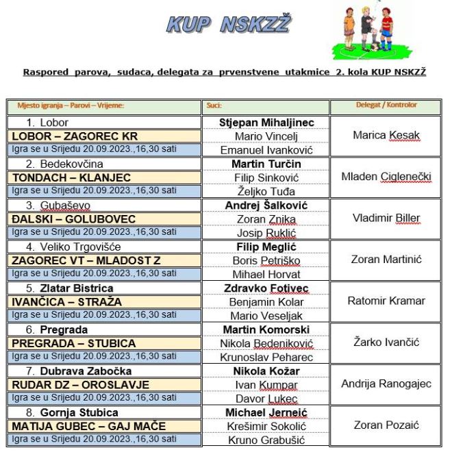 Danas je na rasporedu osmina finala zagorskog nogometnog kupa. U ovoj fazi priključuju se i najveći favoriti Zagorec Krapina i Gaja Mače, a tu je i nekoliko jako zanimljivih susreta. Zagorec KR će u goste Loboru, a Gaj Mače Matiji Gupcu, dakle hrvatski trećeligaši gostuju kod županijskih drugoligaša. Treći zagorski predstavnik u 3. NL centar, Tondach dočekat će kao domaćin Klanjec i to u Poznanovcu i to je zasigurno jedna od zanimljivijih utakmica ovog kruga. I vodeća ekipa 4. NL središte skupina A Golubovec će igrati protiv člana 2. ŽNL, točnije kod Đalskog. Ova faza donosi i jedan susret ekipa iz 4 NL. Naime Ivančica će dočekati Stražu. Preostala dva četveroligaša imaju za protivnike ekipe iz 1. zagorske lige. Tako će Mladost Zabok gostovati kod Zagorca VT, dok će Rudar DZ dočekati Oroslavje. Na rasporedu je i jedan okršaj zagorskih prvoligaša, u kojem Pregrada dočekuje Stubicu. Utakmice se igraju danas u 16.30 sati.