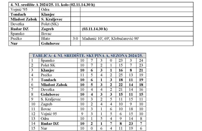 No, većina utakmica igra se danas, a na rasporedu je i veliki zagorski derbi. Tondach, koji je sada, nakon pobjede Prečkog pao na peto mjesto, dočekuje treći Klanjec. Danas će na teren još dva zagorska predstavnika. Mladost Zabok dočekuje Sesvetski Kraljevec, dok Golubovec gostuje kod Nura.