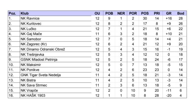 Inače, Zagorec je nakon poraza pao na šesto mjesto sa 21 bodom. Ravnice su slavile kod Vrapča 3:2 i vode sa 28 bodova, a Kurilovec ima 26. Lučko je poraženo kod Trešnjevke (2:0), pa sada Gaj sutra ima priliku stići na treće mjesto, Name, Gaj ima 21 bod, jedan manje od Lučkog, a sutra u 14 sati gostuje kod Bistre.