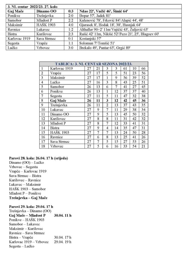 3. NL – centar A: 27. kolo: Gaj Mače – Dinamo Odranski Obrež 0:3