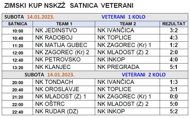 U organizaciji NS KZŽ i NK Tondach, jučer je u Dvorani u Bedekovčini nastavljen Zimski kup u malom nogometu za registrirane klubove KZŽ. Seniori su jučer igrali utakmice 2. kola u svih osam skupina, a priključili su se i veterani.