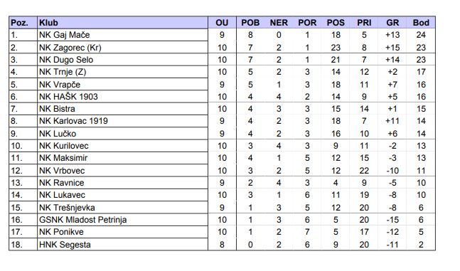 Na listi strijelaca vodi kapetan Zagorca Matija Smrekar s 10 golova, dok je na drugom mjestu napadač Gaja Martin Šaban koji na kontu ima 7 golova.