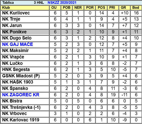 Gaj je zasluženo slavio u zagorskom derbiju i pokazao da je trenutno najbolja zagorska momčad. Krapinčani su u ovu utakmicu ušli oslabljeni i puni problema, koji su se dodatno zakomplicirali ozljedom vratara Babića i iskreno se nadamo da će se što prije vratiti na pravi put. Kurilovec nastavlja s odličnim igrama, ovaj put je na svom travnjaku uvjerljivo savladao Karlovac. HAŠK je bio vrlo blizu svoje druge pobjede, no Ponikve su u zadnjih šest minuta utakmice uspjele "iščupati" bod. Trešnjevki je jedan pogodak bio dovoljan za tri vrijedna boda i bijeg s pretposljednje pozicije, nakon što je Špansko slavilo protiv Vrbovca, no Vrbovčani imaju i tri utakmice manje. Veliki posao napravilo je Trnje koje se gostujućom pobjedom protiv Dugog Sela probilo na drugo mjesto. Nakon silovitog starta Jarun je nanizao i treći remi, ovaj puta protiv Segeste. "Kraljica remija" Bistra, opravdala je svoj nadimak i po peti puta u petoj utakmici sezone je remizirala, ovaj puta protiv poletnog Maksimira koji je nadoknadio zaostatak od 2:0.