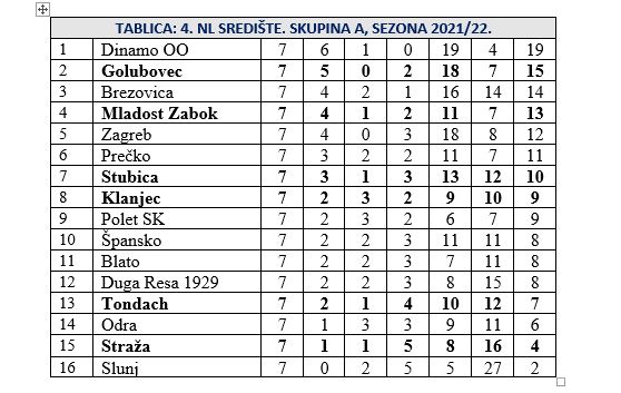 Golubovec sredio Špansko za 2., Mladost Zabok Zagreb za 4. mjesto, bod Klanjca
