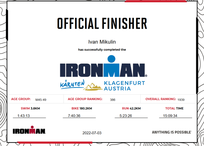 Ivan Miškulin uspješno odradio svoj prvi "Ironman" u Klagenfurtu