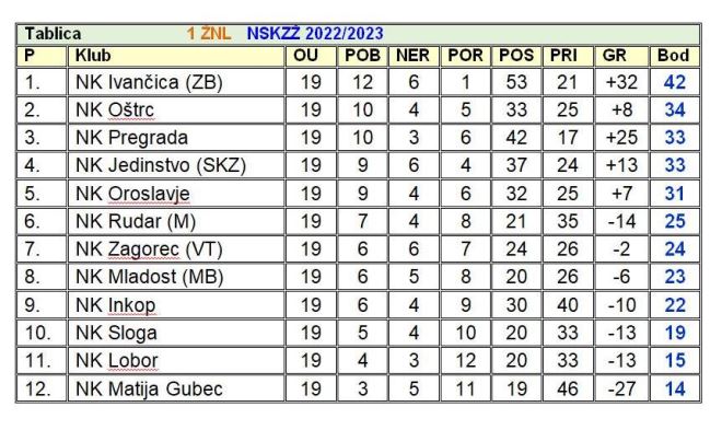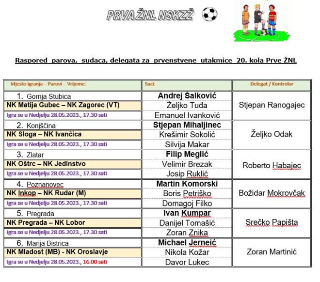 Pred nama je 20. kolo 1. zagorske nogometne lige. Otvorit će ga danas u 16 sati Mladost MB i Oroslavje, u utakmici u kojoj se Mladost bori za što veću sigurnost oko opstanka, a Oroslavje za poredak na vrhu iza neuhvatljive Ivančice. Ostale utakmice počinju u 17.30 sati, a vodeća Ivančica ima priliku i službeno osigurati naslov. Podsjećamo, ekipa iz Zlatar Bistrice ima svih osam proljetnih pobjeda, a danas im je i bod dovoljan za i teoretski osiguravanje naslova. Derbi u borbi za drugo mjesto igrat će danas Oštrc i Jedinstvo. Pregrada će dočekati Lobor, a vrlo važnu utakmicu za siguran opstanak igraju Inkop i Rudar M. Zagorec VT će kod zadnjeg Matije Gupca pokušati osigurati svoj siguran status.