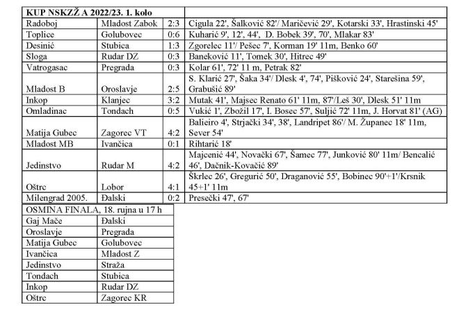 Donosimo i sve ostale rezultate 1. kola zagorskog kupa, kao i parove osmine finala:
