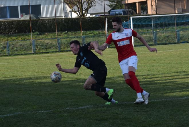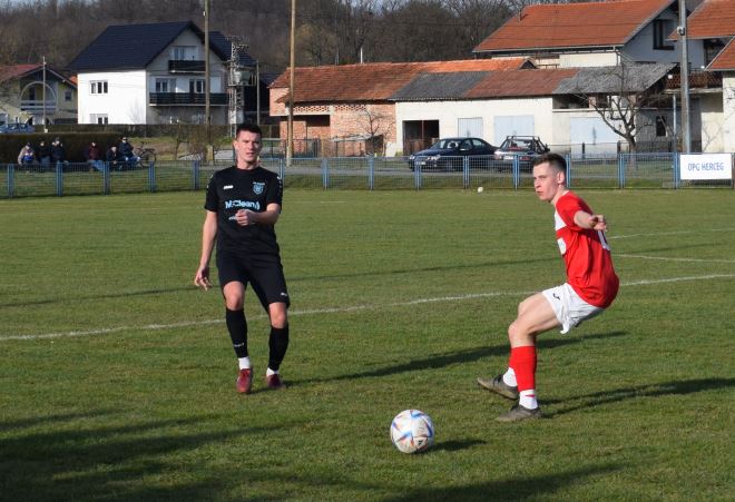U 43. minuti Silvio Ferček dobiva jednu loptu na lijevoj strani, pokušava ubaciti, ali se to pretvara u opasan udarac pod gredu, ali Turčić je oprezan i hvata loptu. U drugoj minutu sučeve nadokande prvog poluvremena F. Videk opet dobro ubacuje s desne srane, lopta prolazi nedaleko gol crte, ali svi kao da su skamenjeni i nitko ne reagira, kako od obrane gostiju, tako i od napada domaćina, a kada je izašla iz opasne zone sudac Lukec svira kraj prvoga dijela, u kojem su domaćini imali posjed, ali i pokazali previše nespretnosti u završnici, dok su gosti jednu od dvije kontre pretvorili u vrijedno vodstvo.